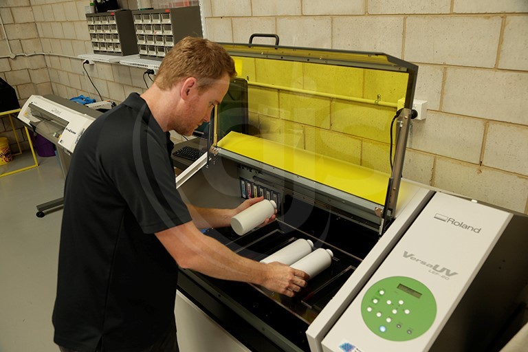 Never wanting to stand still, Push Productions has recently invested in a Roland VersaUV LEF-20 to further expand its business into the promotional products market. This is in conjunction with a Roland SP-300i Printer/Cutter that now enables Push Productions to incorporate thermal textile vinyl into its garment decoration services.